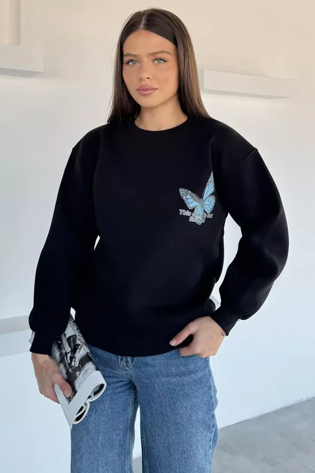 سويشرت نسائي قصير بياقة دائرية وكتف منخفض - Beyond Store
