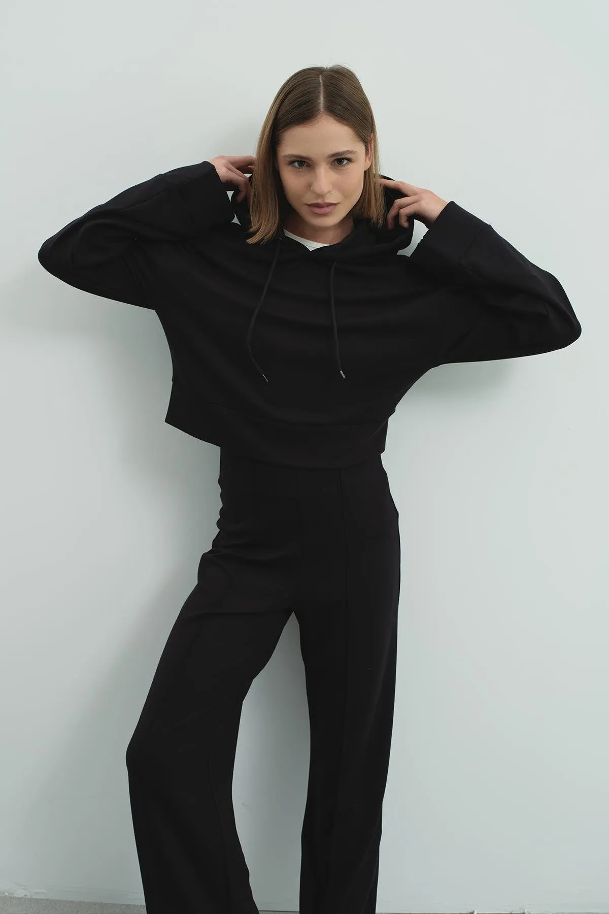 سويشرت مضلّع بياقة دائرية وكتف منخفض لراحة يومية أنيقة.