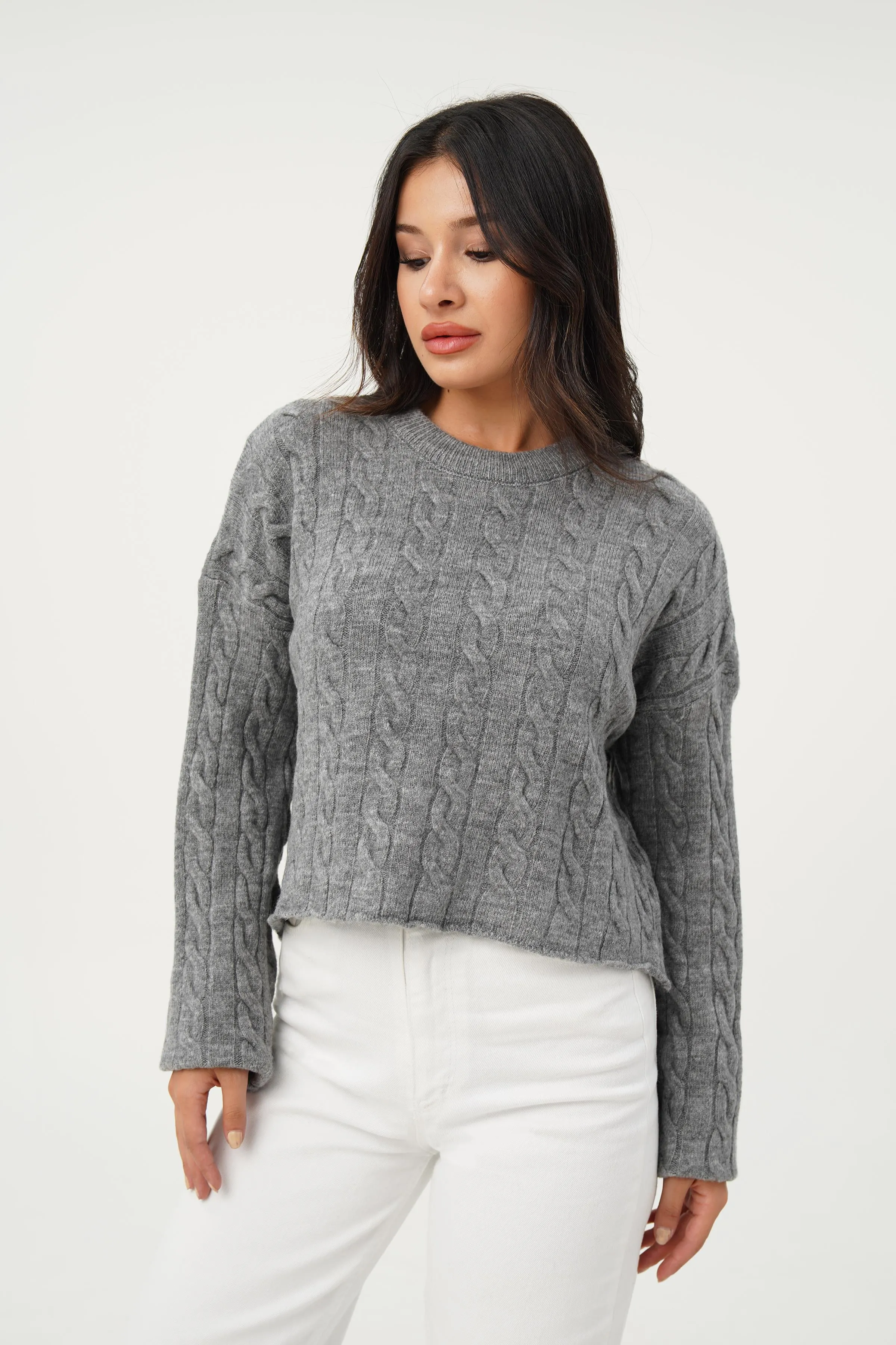 كنزة نسائية محبوكة بياقة V وحواف كشكش ناعمة لستايل أنيق ومريح في الخريف والشتاء.
