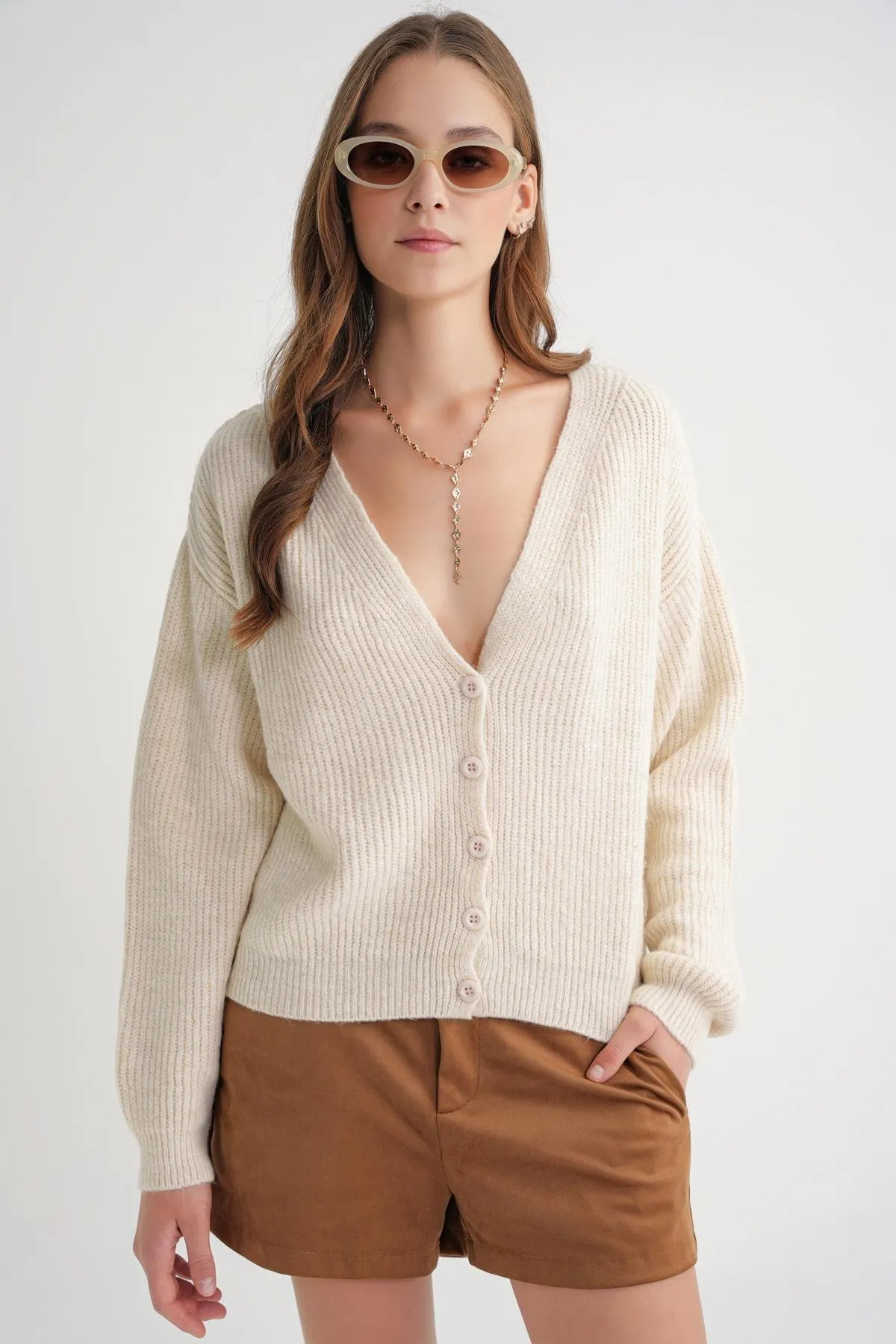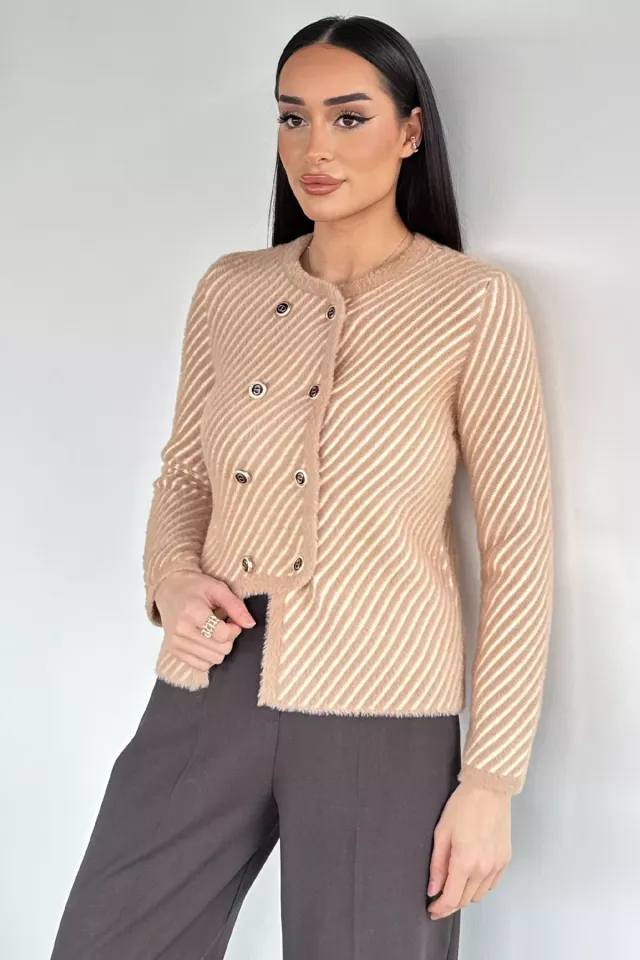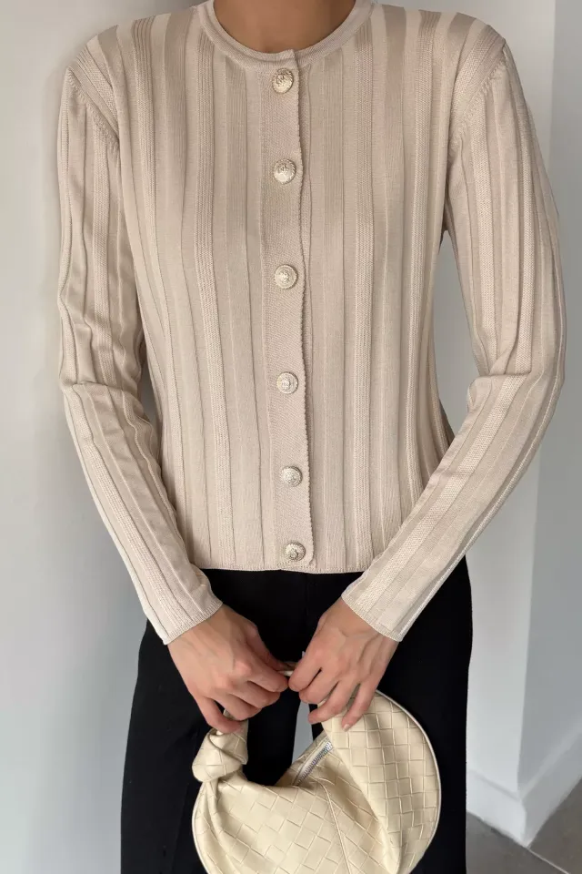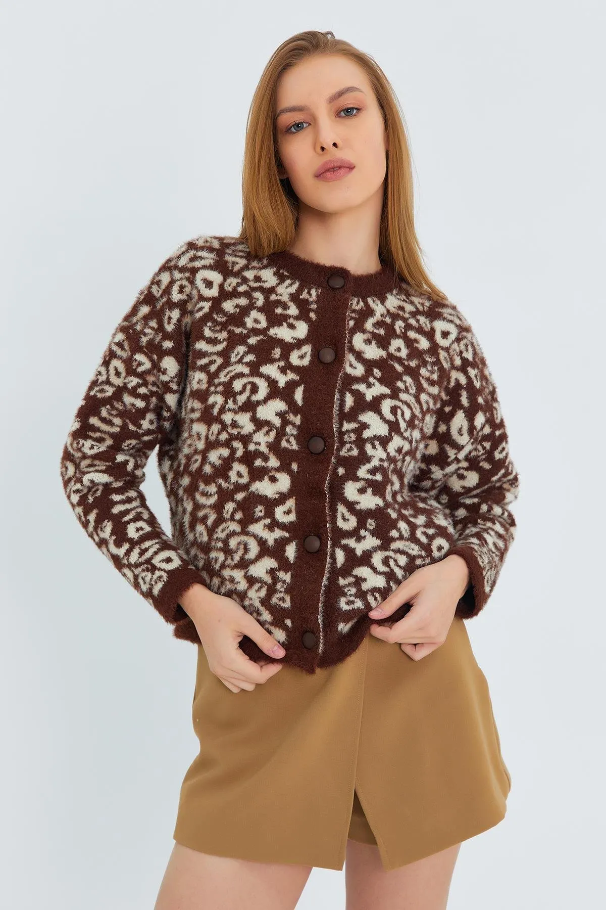 كارديغان نسائي قصير بياقة دائرية وأزرار أمامية - Beyond Store