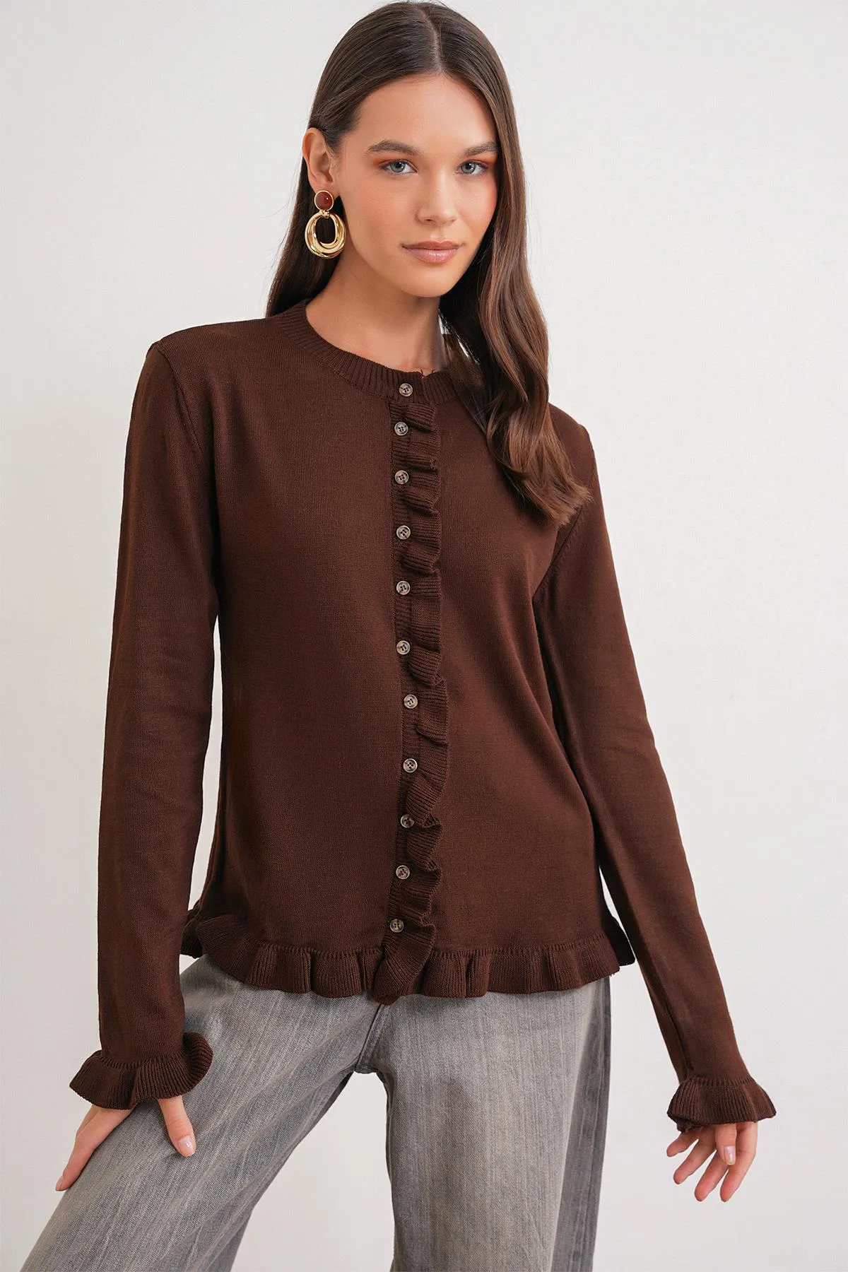 كارديغان نسائي قصير بياقة دائرية وأزرار أمامية