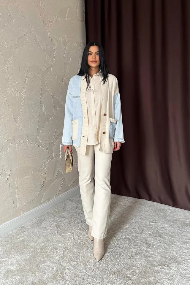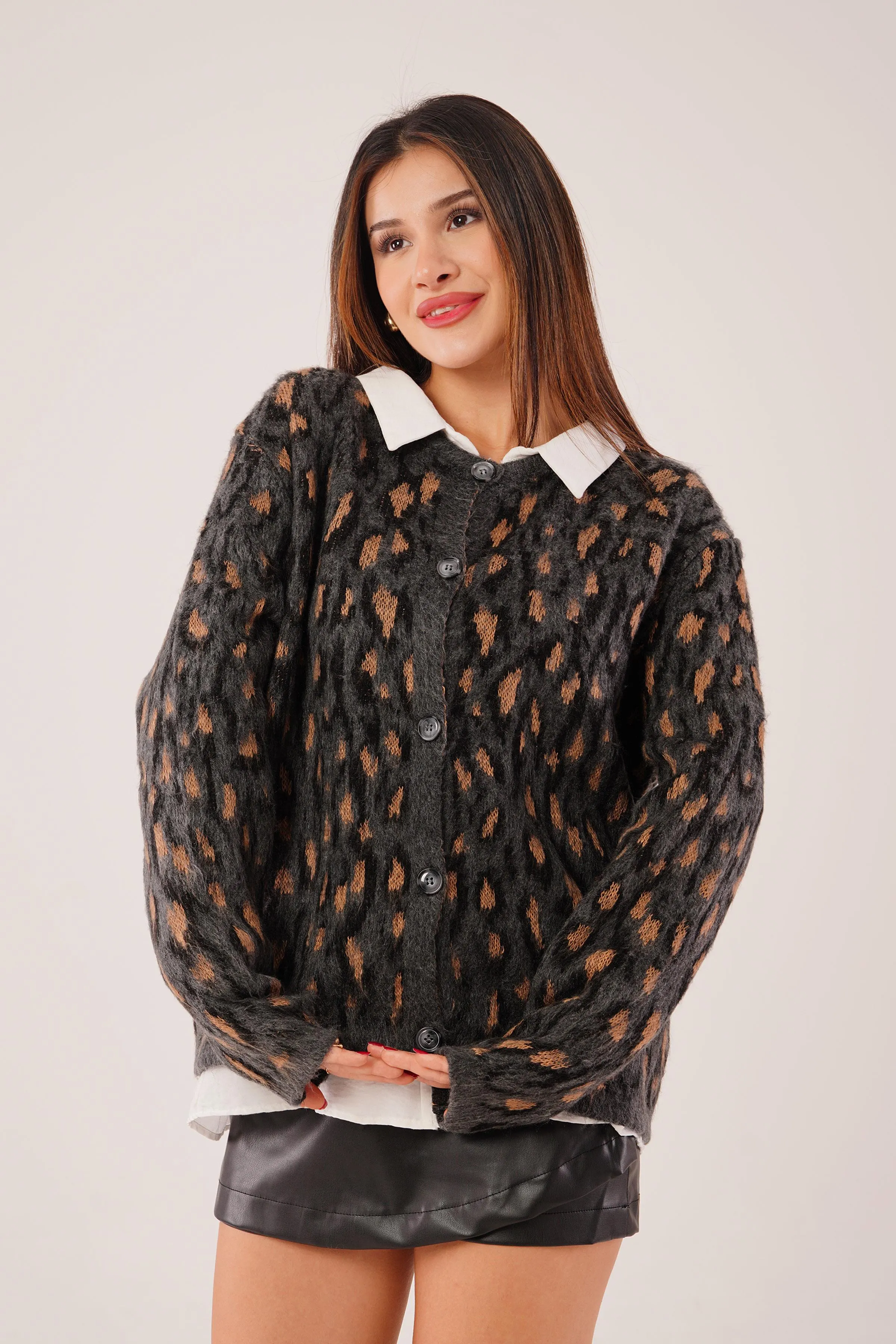 كارديغان نسائي بقصة ضيقة بحياكة ناعمة مع أزرار أمامية وحواف كشكش تمنح لوك شتوي كيوت وعصري.