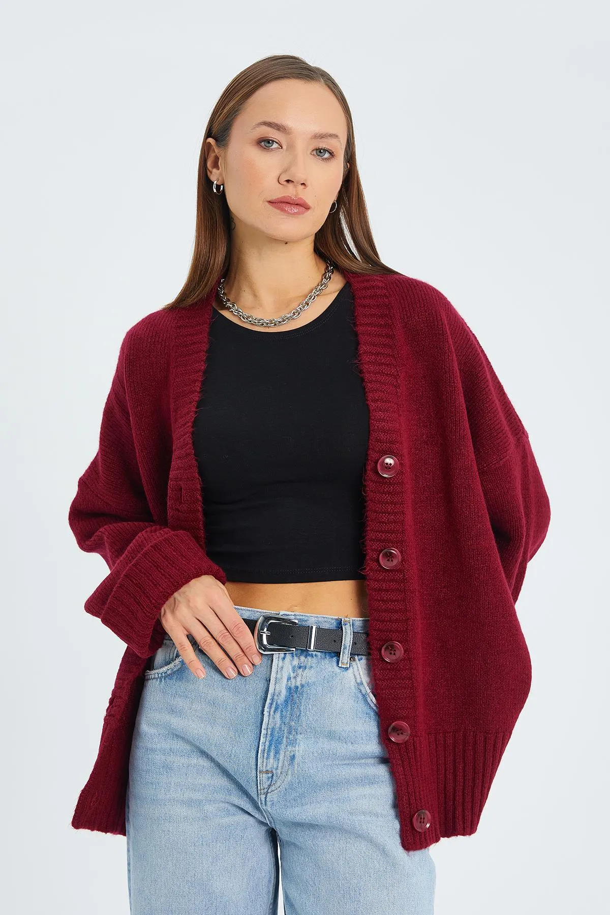 كارديغان نسائي بحواف كشكش وأزرار أمامية بقصة ضيقة - Beyond Store