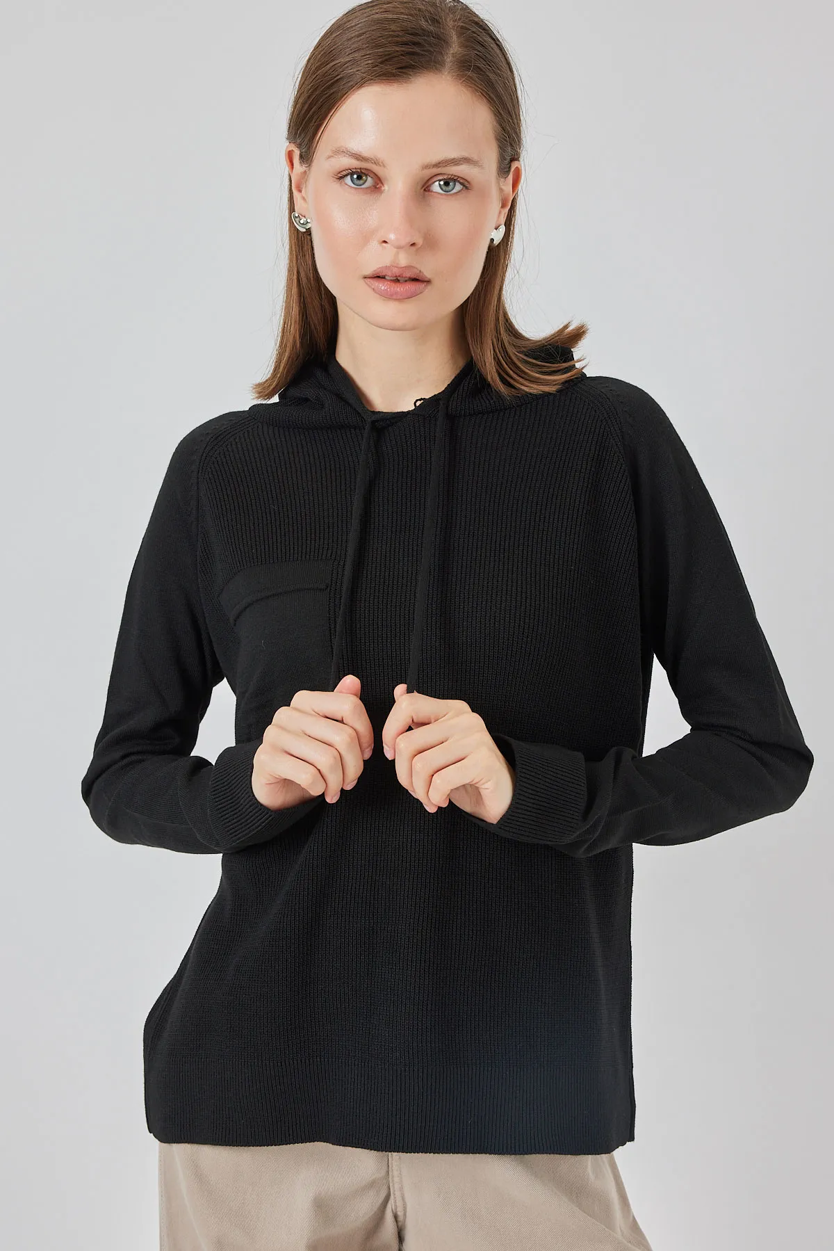 كنزة نسائية كبيرة الحجم برقبة دائرية وأكمام طويلة - Beyond Store