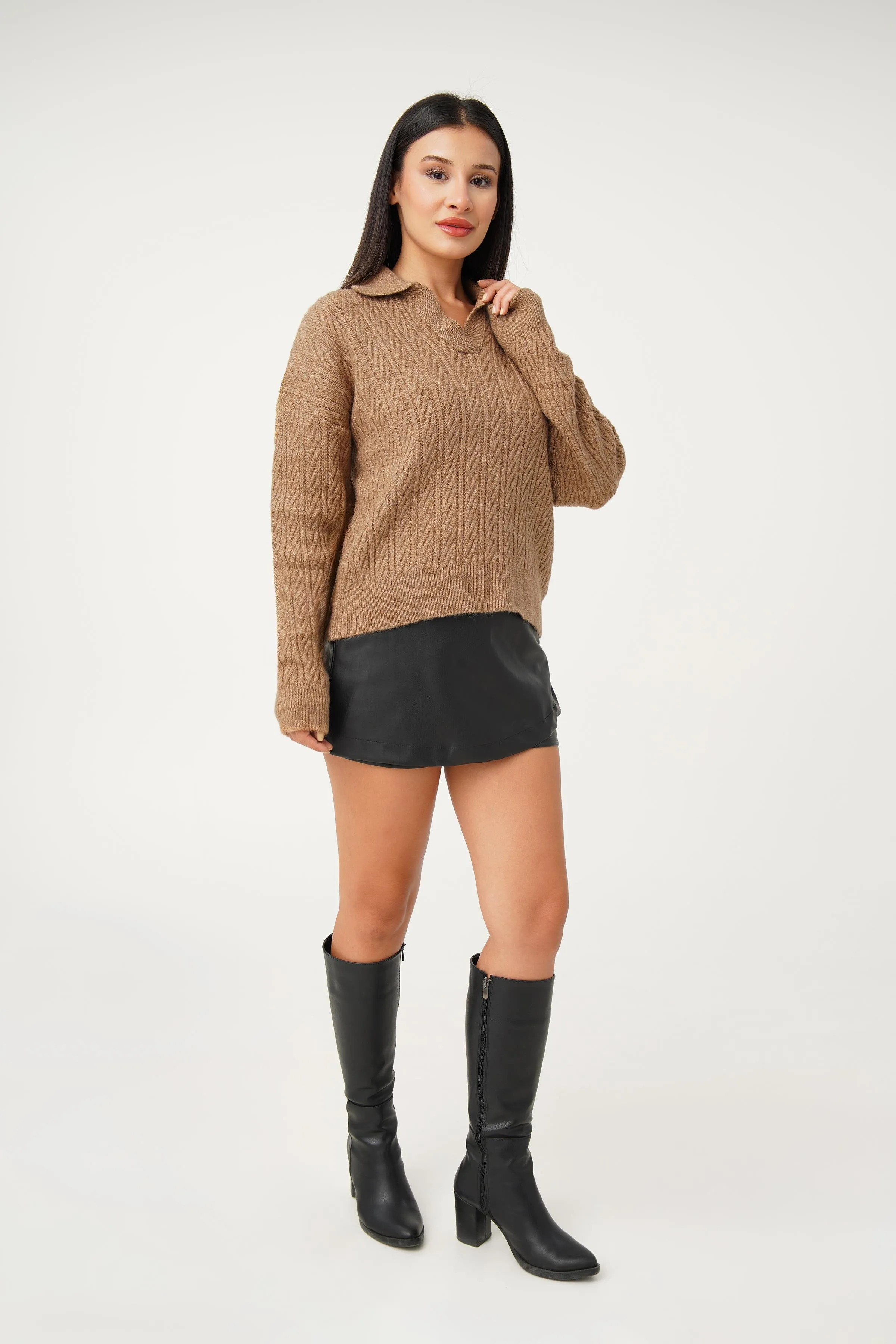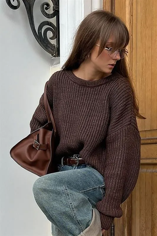 كنزة تريكو واسعة برقبة دائرية وأكمام طويلة لإطلالة يومية مريحة تريند تفضل