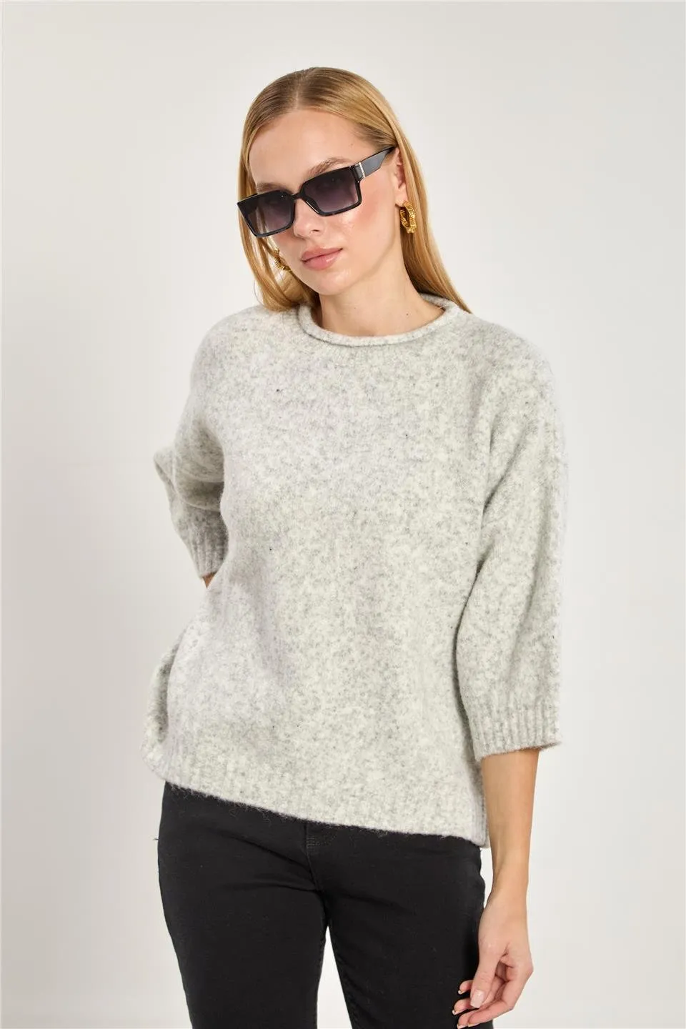 كنزة نسائية كبيرة الحجم برقبة دائرية وأكمام طويلة