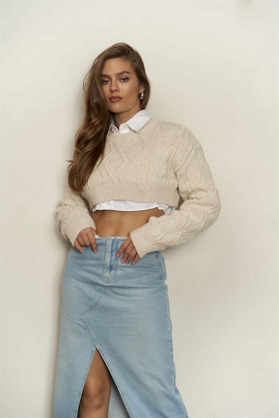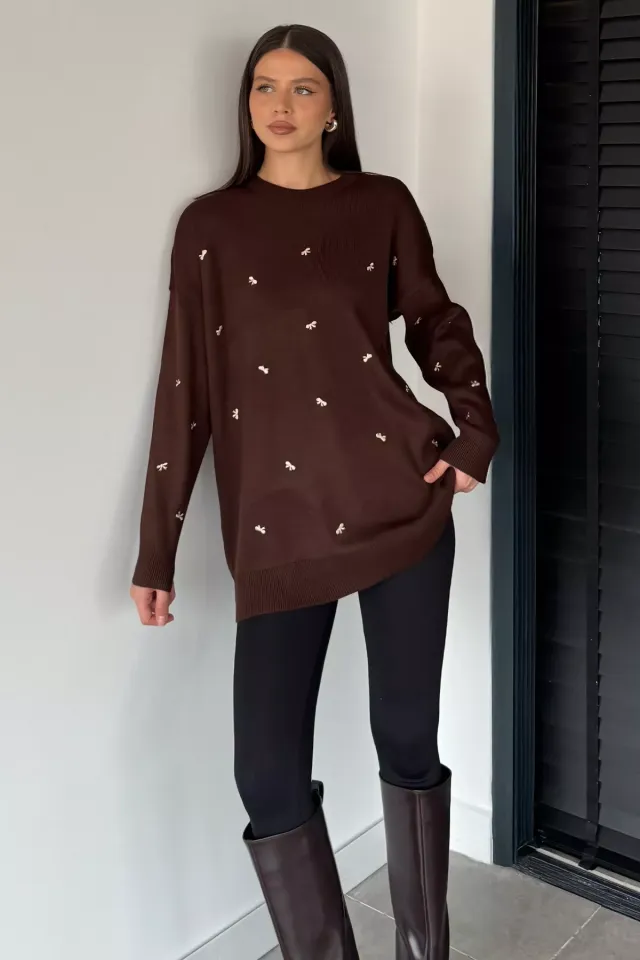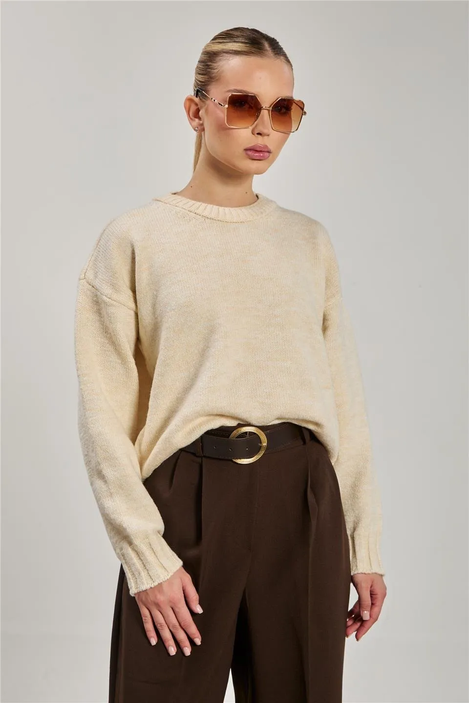 كنزة نسائية كبيرة الحجم برقبة دائرية وأكمام طويلة - Beyond Store