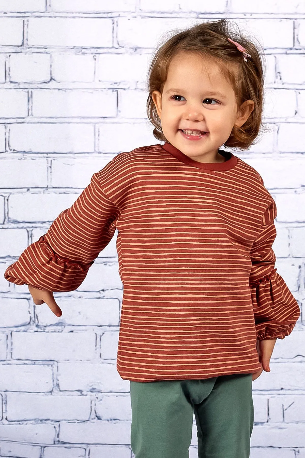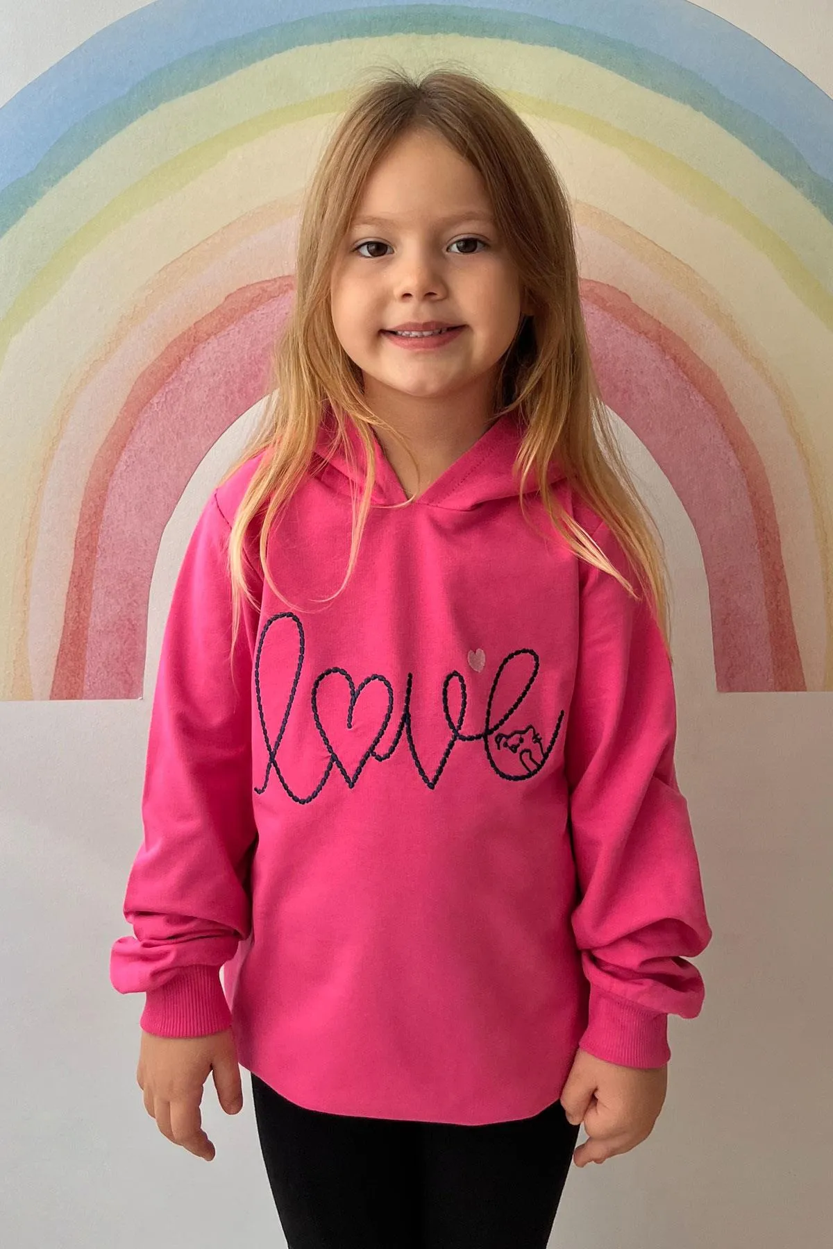 سويت شيرت بناتي مريح مزين بطبعات قلوب وفيونكات لطيفة، مصنوع من قماش ناعم ومتنفس يمنح طفلتك راحة وأناقة في الإطلالات اليومية.
