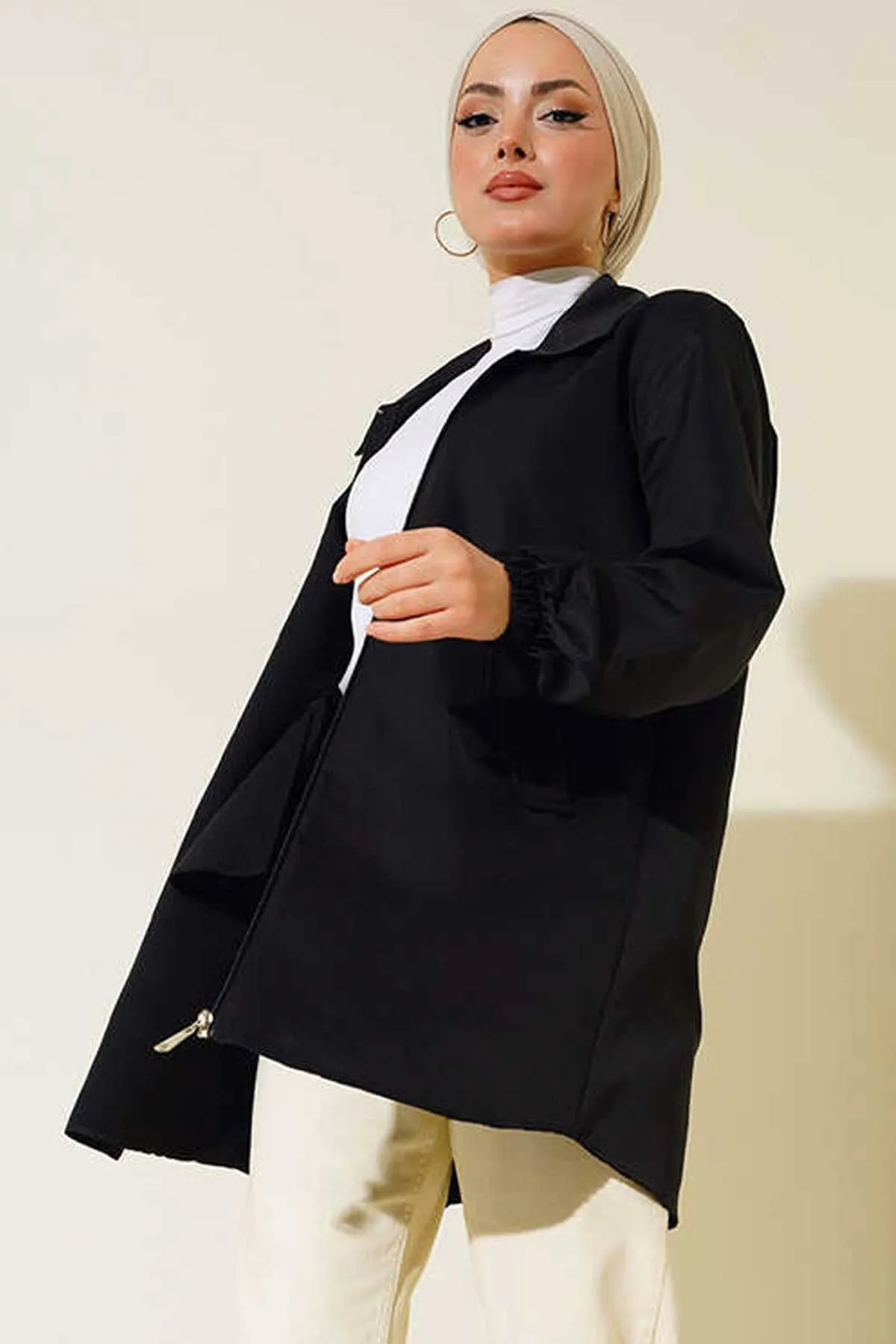 مبطن، طابع الصدر المزدوج، حزام خصر، كتف منخفض، جيبان