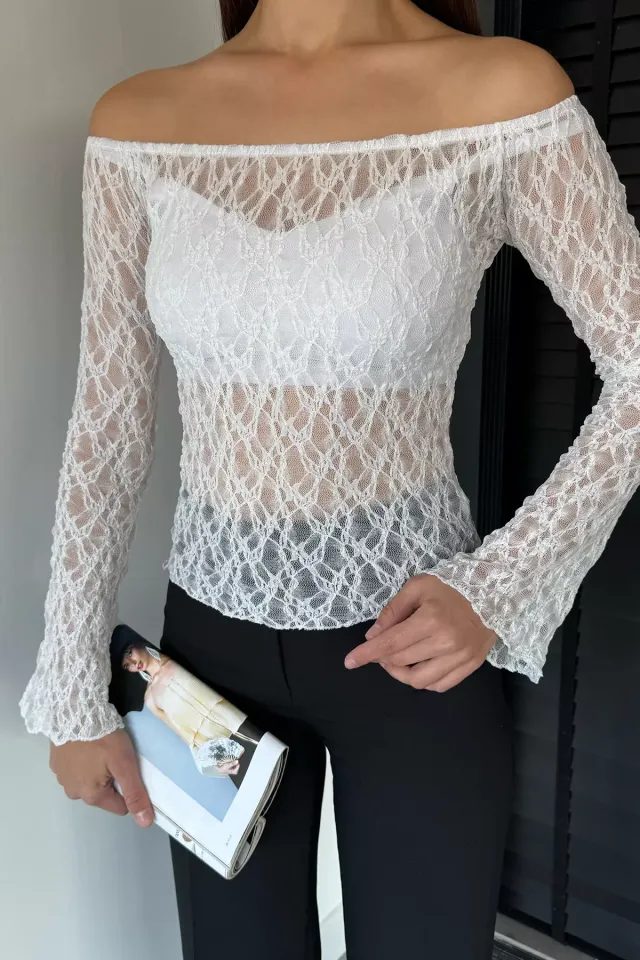 بلوزة تريكو مضلعة ناعمة بياقة دائرية وأكمام طويلة لستايل يومي بسيط ومريح.