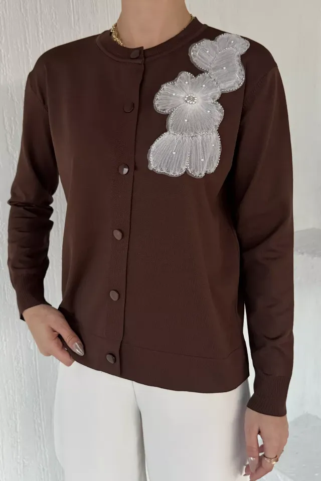 كارديغان تريكو ناعم بقماش شاج ولمسة فريش خفيفة مع أزرار لإطلالة يومية دافئة وكيوت.