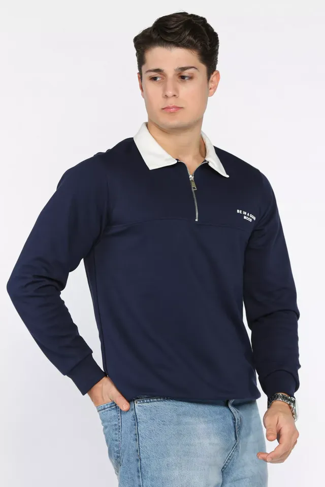 سويت شيرت رجالي محبوك بأكمام طويلة وياقة دائرية وتصميم أنيق وعصري. مزيج من القماش الناعم والمرن من 90% بوليستر و10% إيلاستين يضمن الراحة والملاءمة الأنيقة.