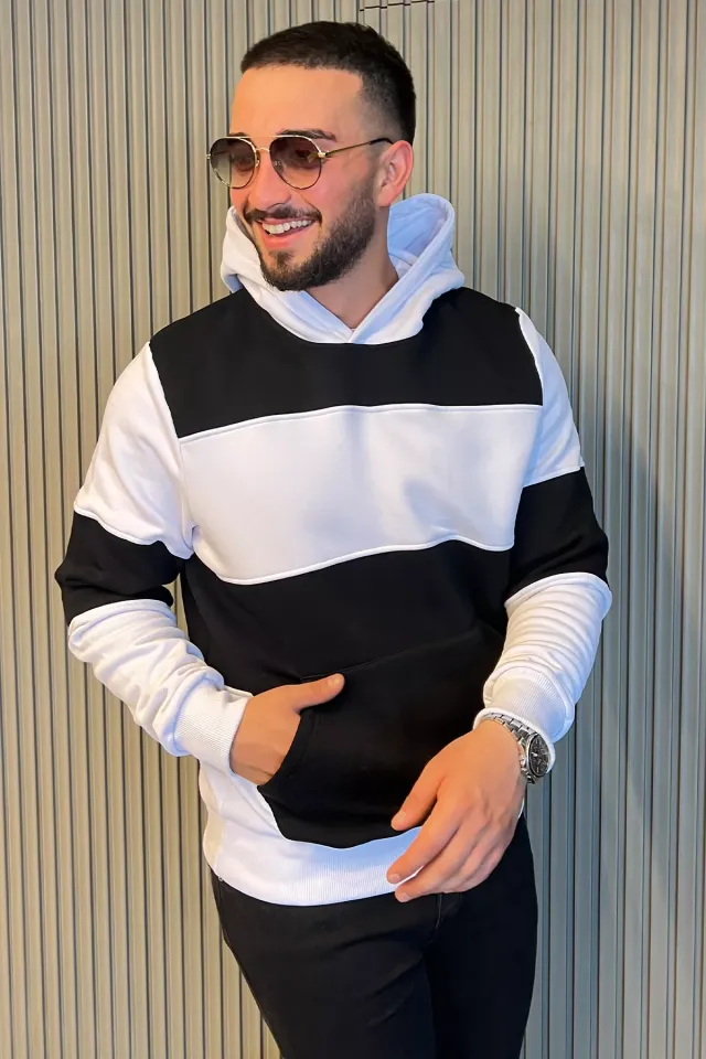 سويت شيرت رجالي محبوك بأكمام طويلة وياقة دائرية وتصميم أنيق وعصري. مزيج من القماش الناعم والمرن من 90% بوليستر و10% إيلاستين يضمن الراحة والملاءمة الأنيقة.