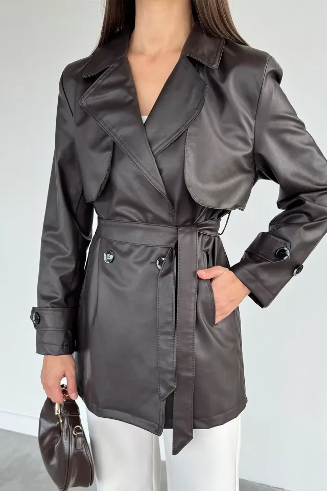 ترنش ميدي مبطن بتصميم مزدوج الصدر مع حزام خصر لإطلالة دافئة راقية ومثالية للاستخدام اليومي.