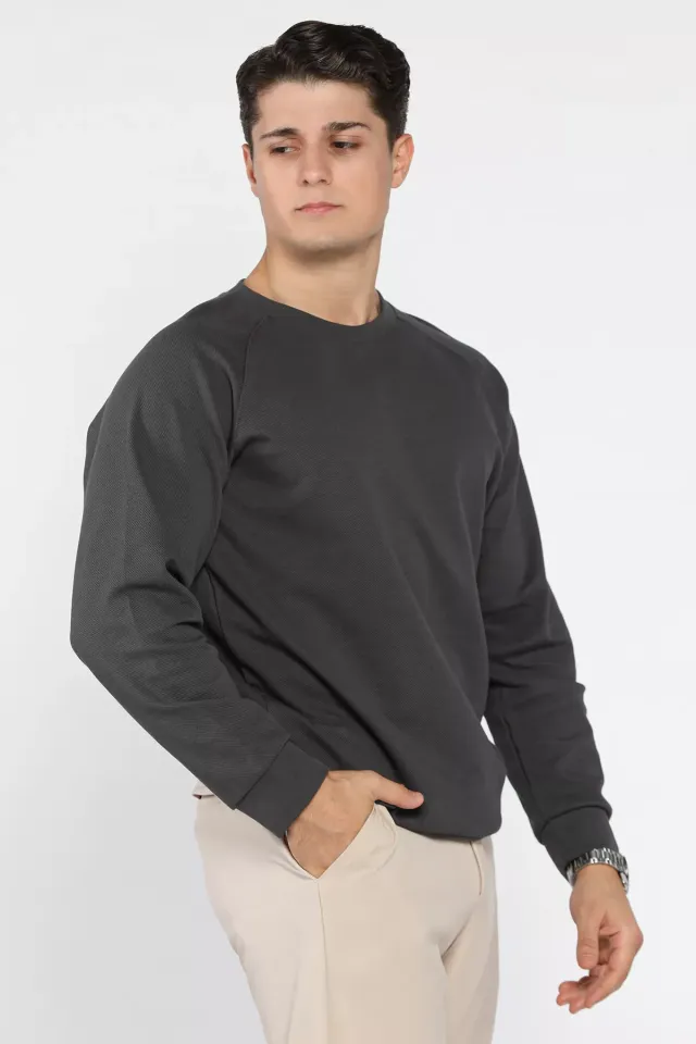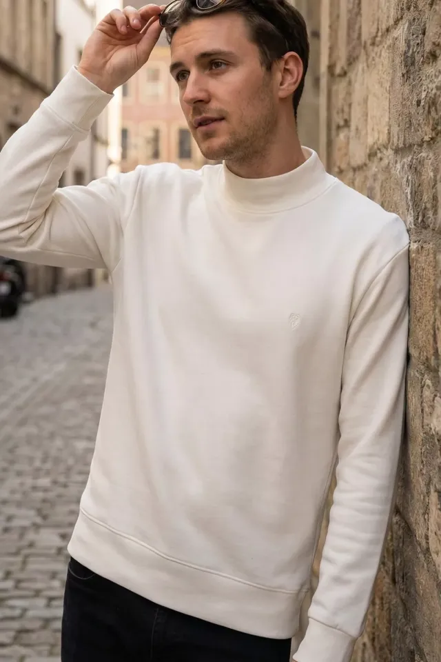 تمتع بالأناقة مع سويتشيرت رجالي مطبوع بياقة بولو وأزرار، مصنوع من مزيج القطن والبوليستر بقصة ضيقة تمنحك راحة وأناقة في الإطلالات اليومية.