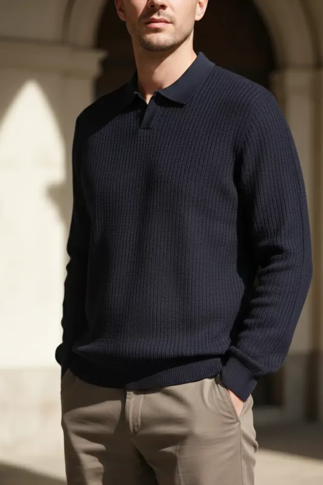 سترة رجالية محبوكة مريحة بأكمام طويلة وياقة دائرية