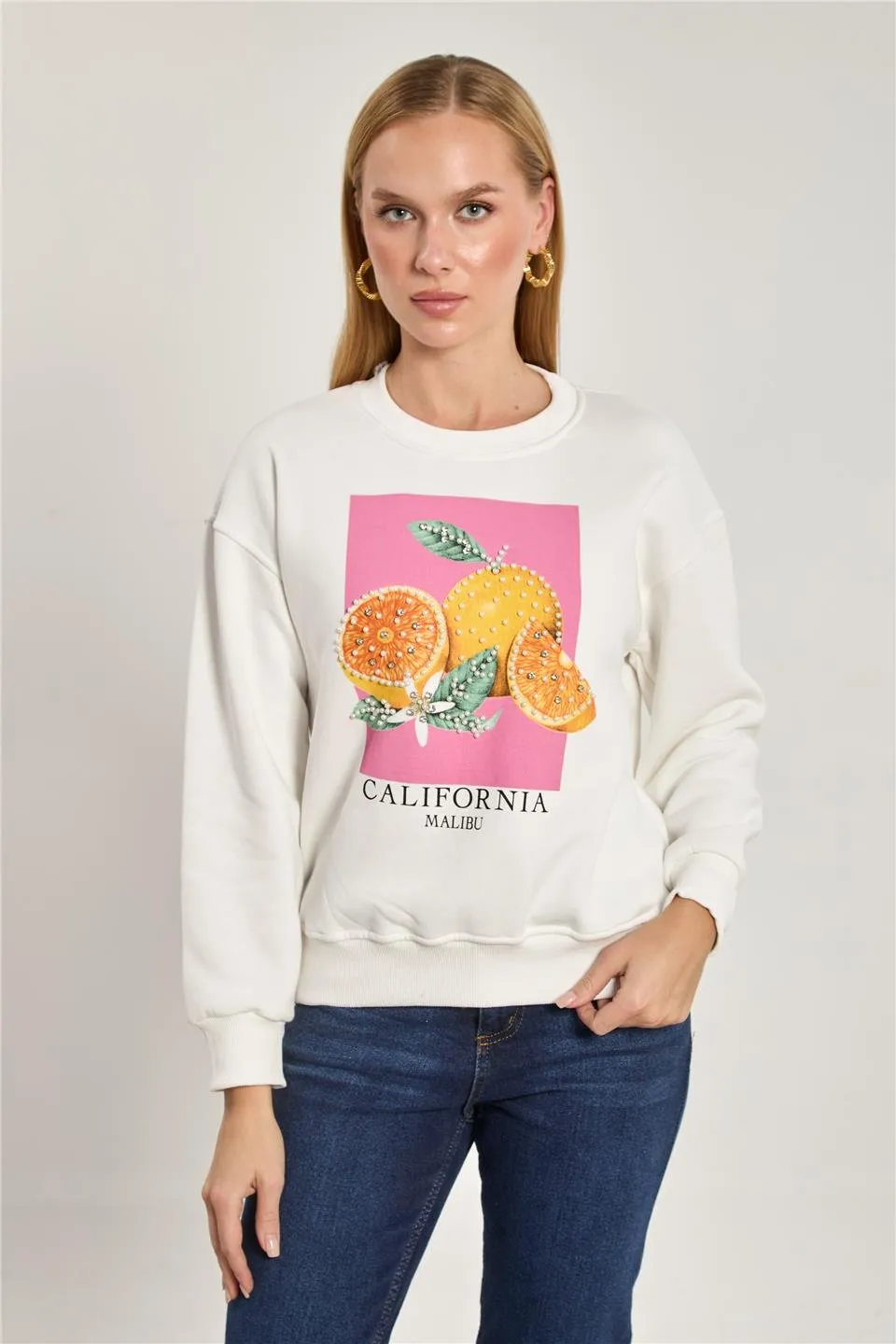 سويت شيرت نسائي بياقة دائرية بتطريز لابوبو - Beyond Store