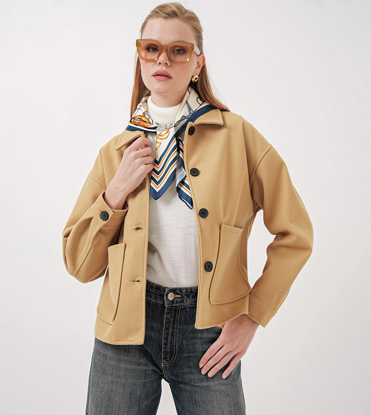 الموديل ترتدي مقاس S – الطول ١٧٢ سم، الوزن ٥٣ كغ، الصدر ٨٣ سم، الخصر ٧٠ سم، الورك ٩١ سم