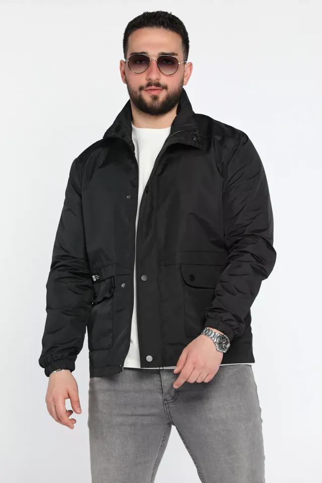 جاكيت رجالي كلاسيكي سادة بأكمام طويلة وياقة قميص وجيب مزدوج وزر كبس