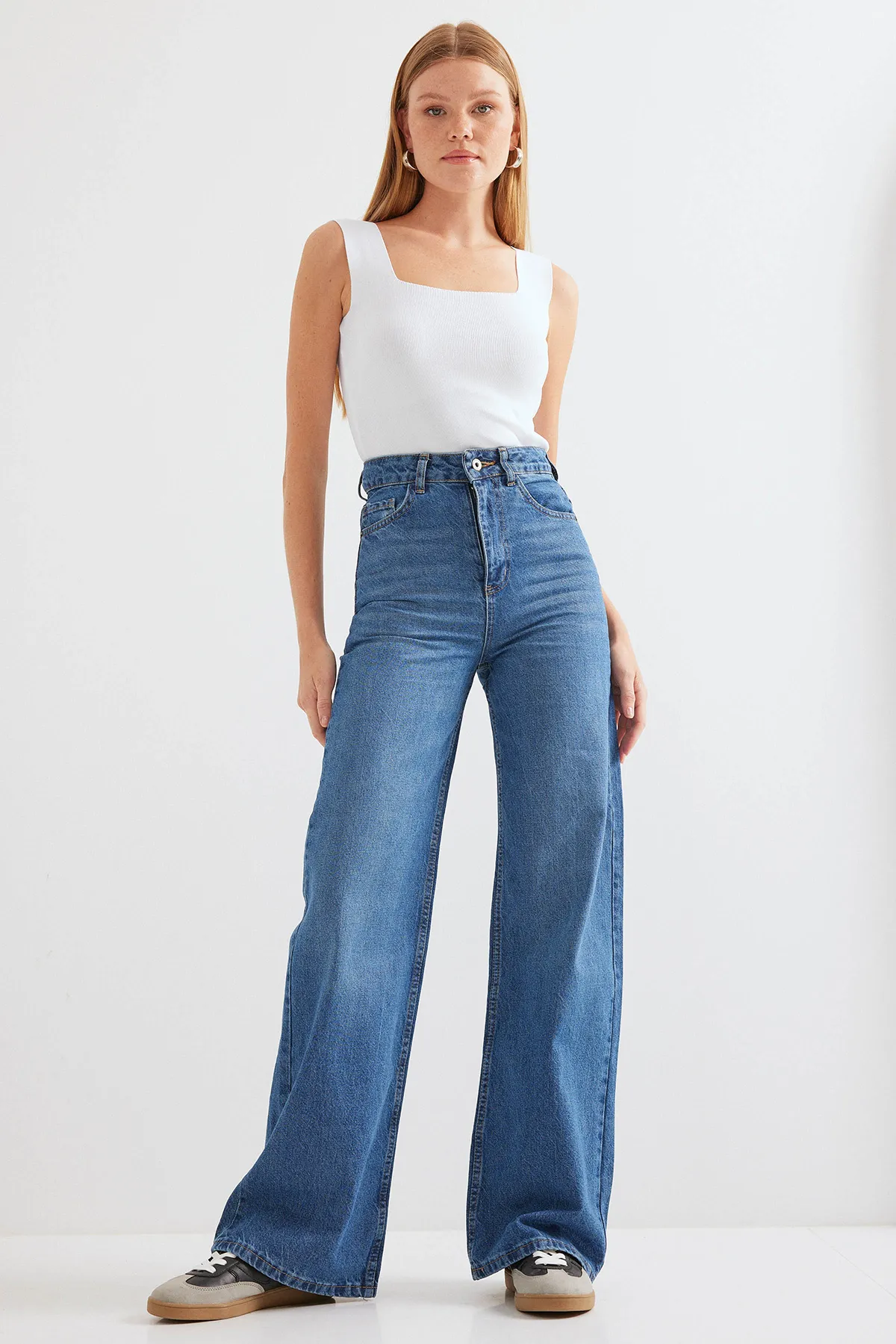بنطال جينز بخصر عالي وقصة موم
