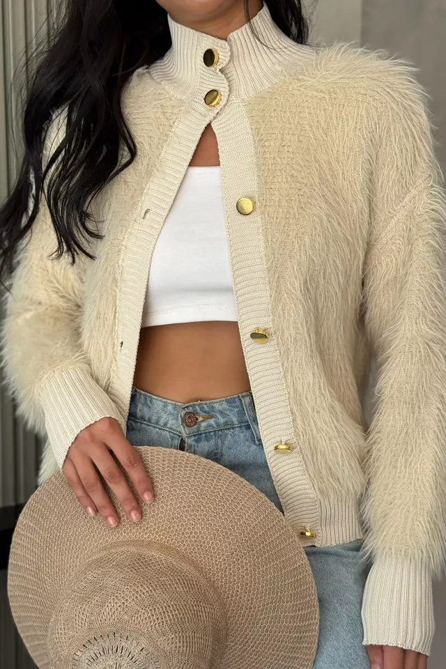 جاكيت سويت بقصة مريحة مع خصر مطاطي وأزرار كبس لإطلالة شتوية يومية ناعمة وعصرية.