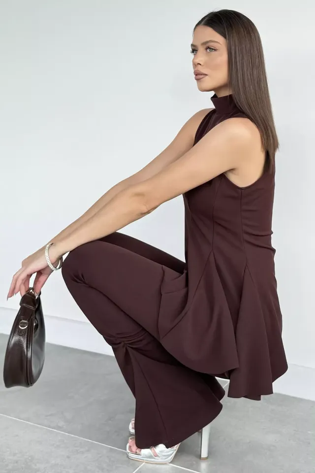 طقم نسائي بسحّاب نصف وياقة عالية وبنطال بالازو - Beyond Store