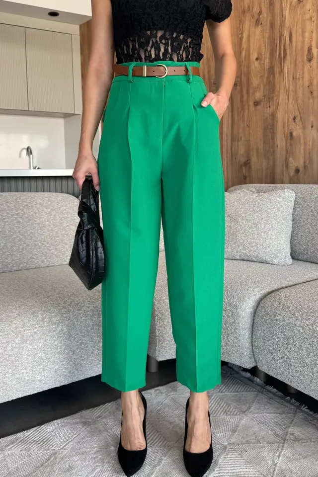 بنطال نسائي بخصر عالي وقصة إسباني مع خصر مطاطي ولمعة خفيفة لستايل يومي مريح وشيك.