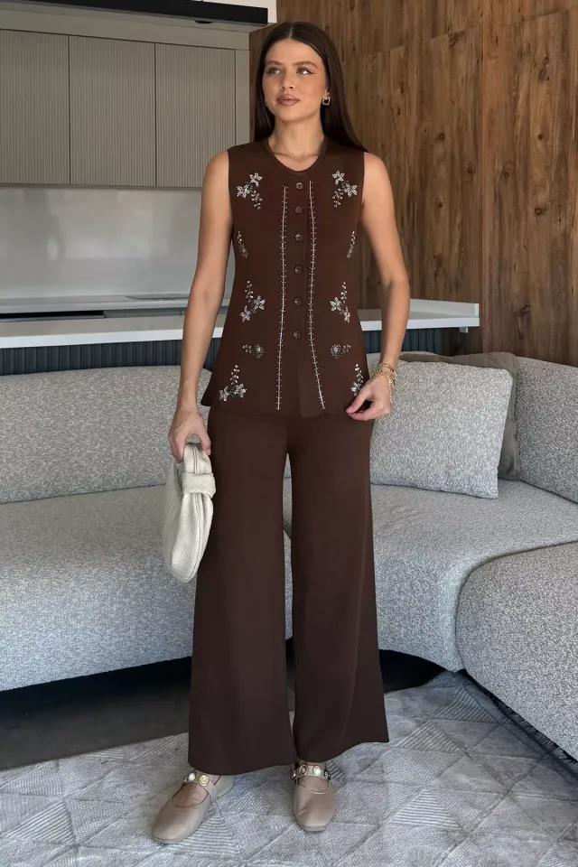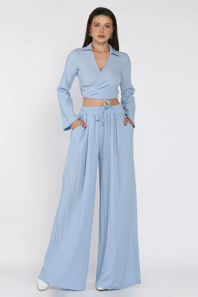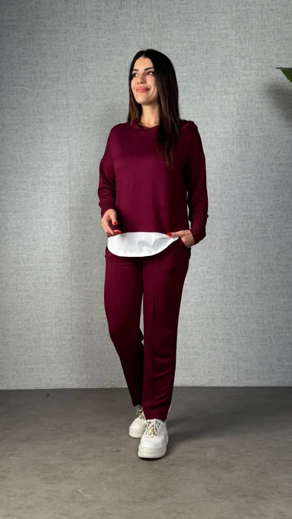 طقم كيوت من قطعتين ببلوزة بسحاب وغطاء رأس وبنطال واسع بخصر عالي لِلوك يومي مريح وعصري.