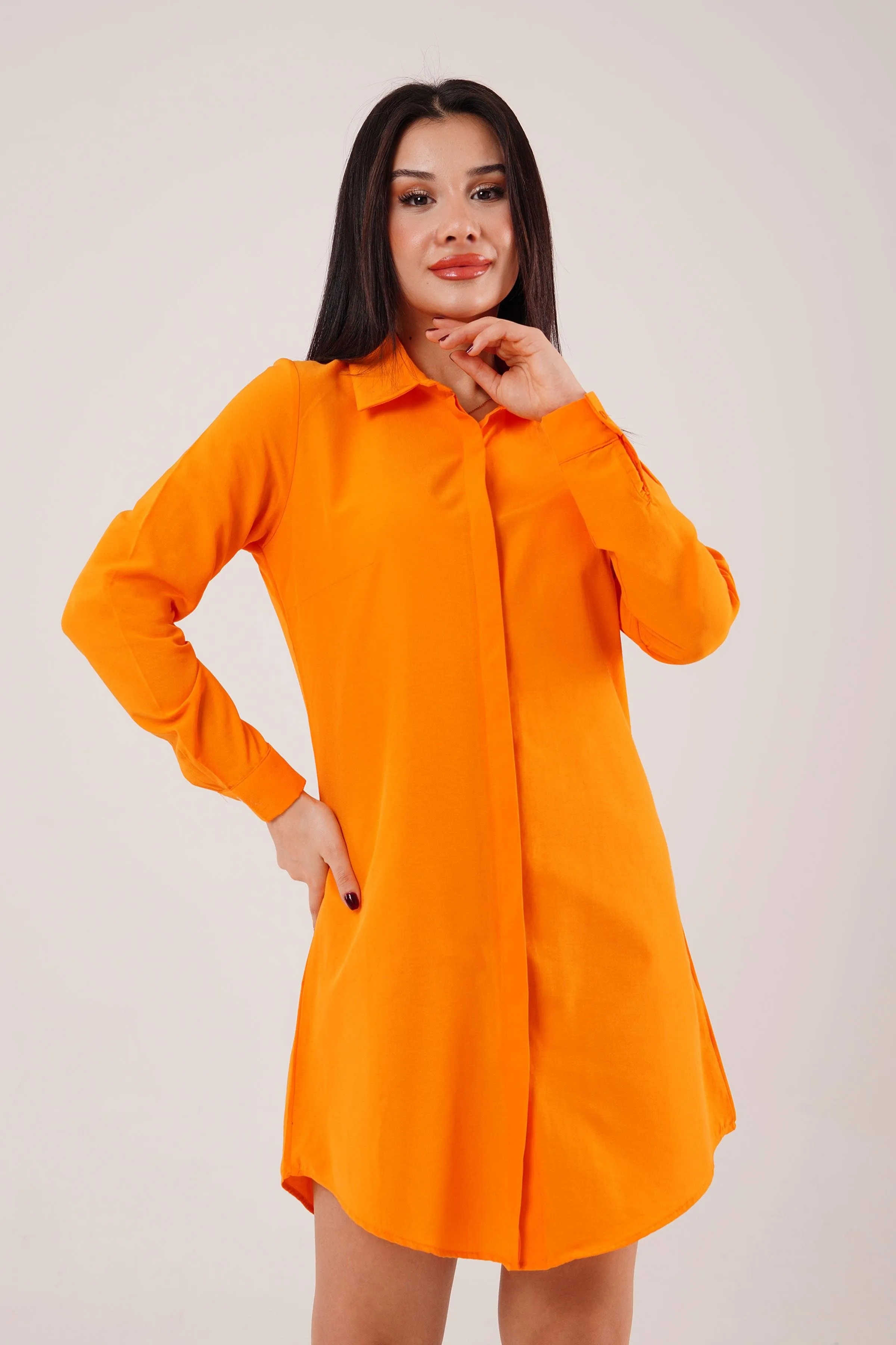 فستان ميدي بأكمام طويلة للنساء مع ياقة على شكل حرف V وشق جانبي أنيق مزين بتفاصيل كشكشة، مصنوع من قماش ناعم وانسيابي يمنح راحة وإطلالة جذابة، مثالي للخروجات اليومية أو المناسبات شبه الرسمية.