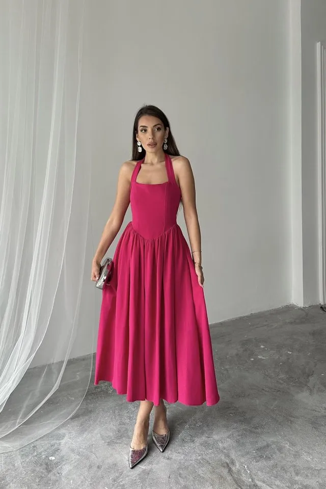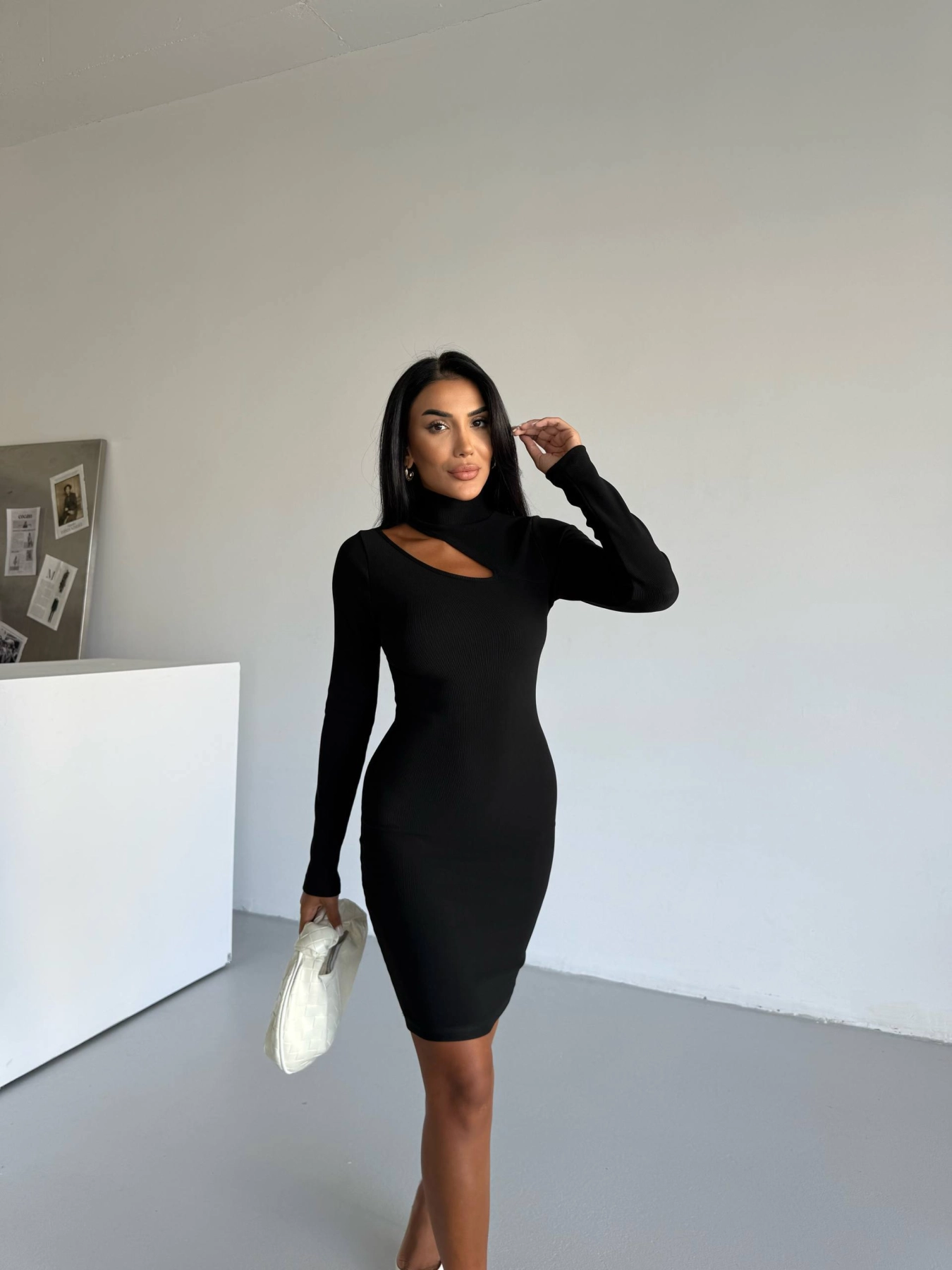 فستان قصير محبوك بأكمام طويلة للنساء مع ياقة على شكل حرف V، مصنوع من قماش محبوك ناعم ومرن يمنح راحة وأسلوب أنيق، مثالي للخروجات اليومية وأيام الطقس البارد.