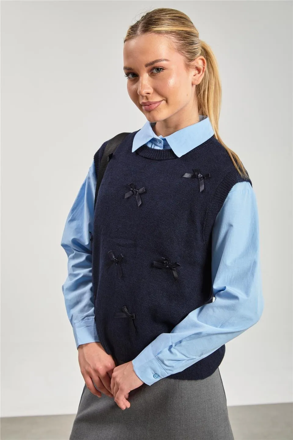 كنزة نسائية تريكو بياقة V وتصميم مخرّم لستايل يومي شيك ومريح وسهل التنسيق.