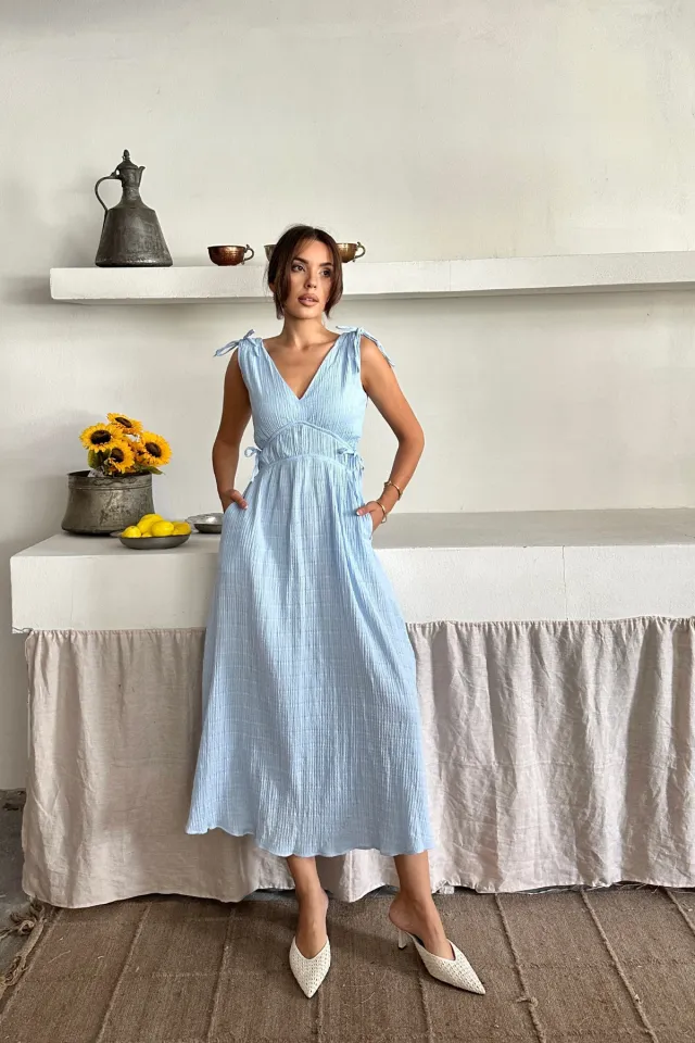 فستان ماكسي نسائي بأكمام طويلة يتميز بياقة V أنيقة مع تفاصيل طيات ناعمة وتفصيل توكا يضفي لمسة عصرية راقية. مصنوع من قماش مريح وانسيابي يمنح إطلالة أنثوية متوازنة تناسب مختلف المناسبات.