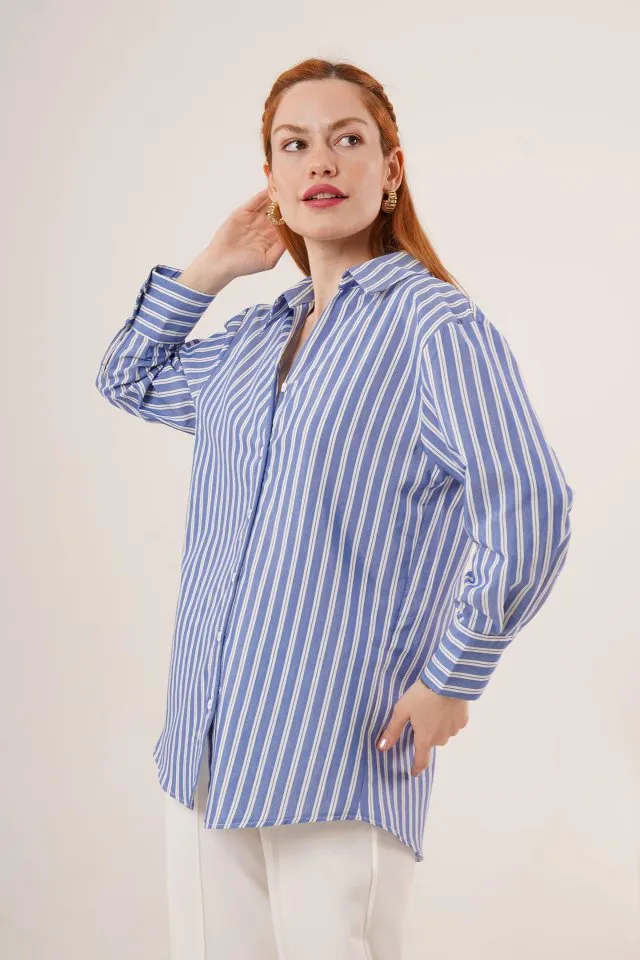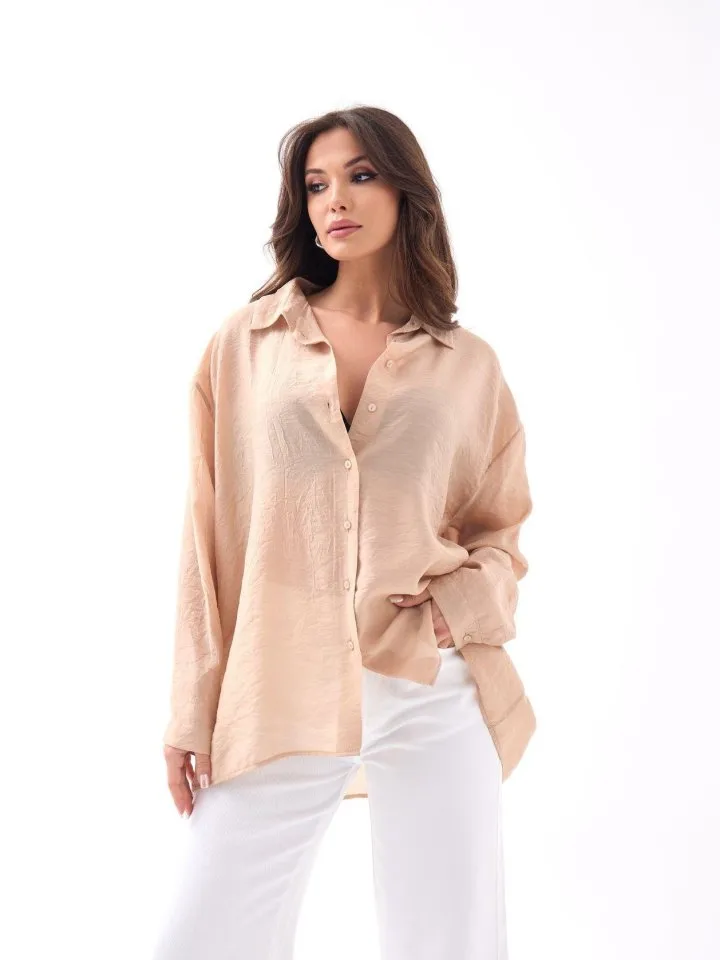 قميص نسائي واسع بأكمام بالون وياقة بربطة من قماش فيسكوز ناعم يمنحك لوك صيفي مريح ومنعش.