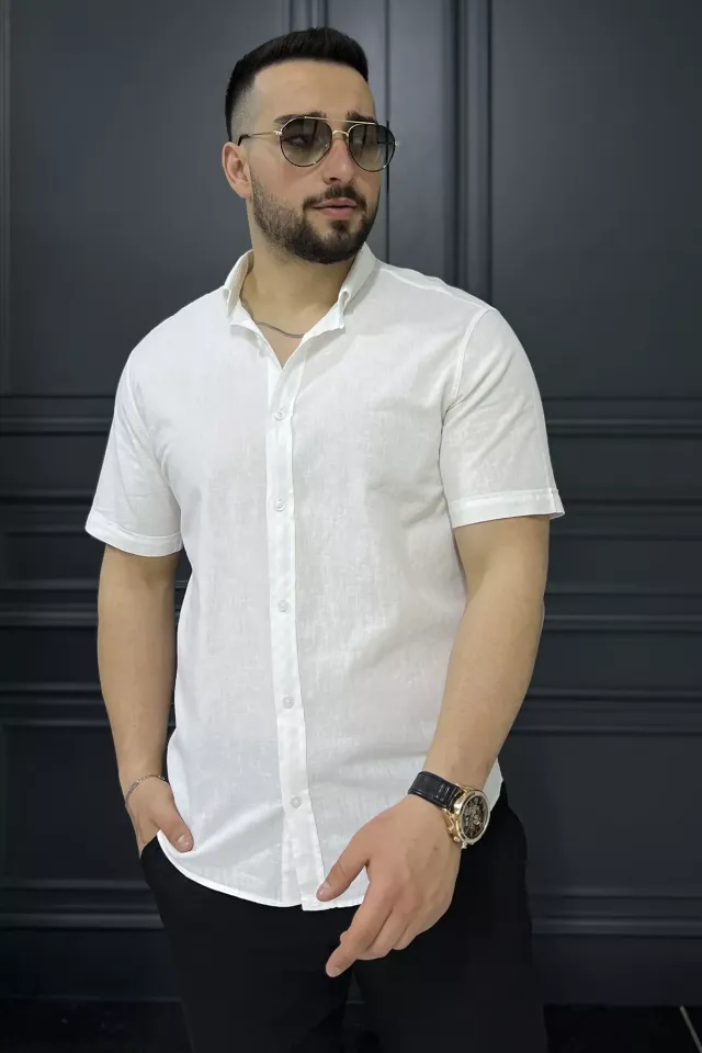 قميص رجالي كاجوال كلاسيكي بأكمام طويلة وقصة مريحة مع أزرار أمامية، مصنوع من 98% قطن و2% ليكرا، يمنح نعومة طبيعية ومرونة خفيفة ومظهرًا مرتبًا.