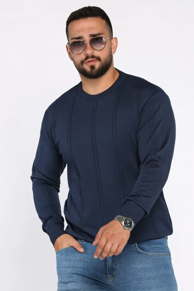 سويتر رجالي محبوك بياقة بولو بتصميم مضلع ونقوش خطوط أنيقة، مصنوع من قماش ناعم ودافئ يمنحك الراحة والمظهر العصري في المواسم الباردة.