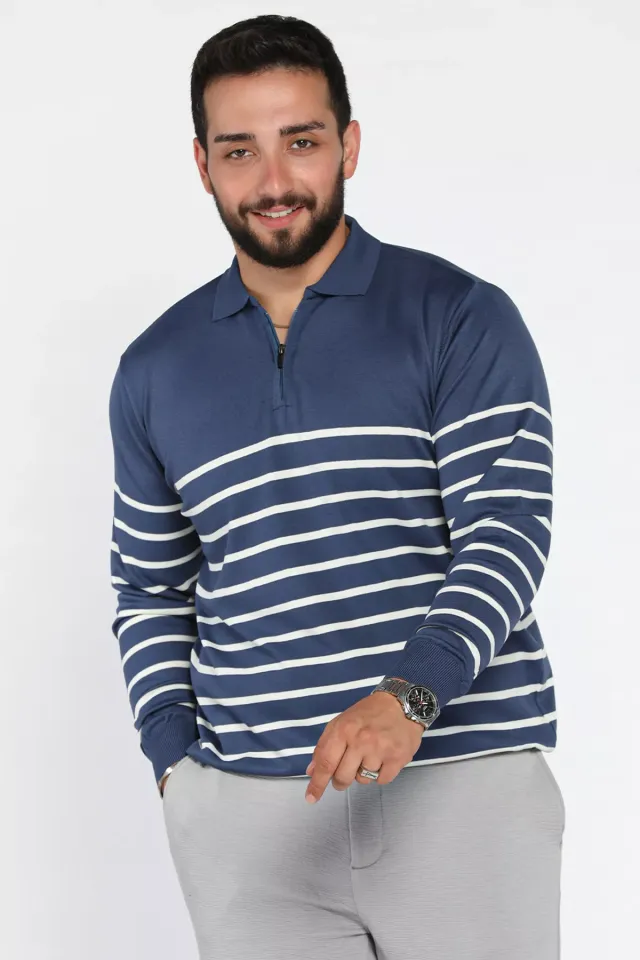 سويتر رجالي محبوك بياقة دائرية وتصميم مضلع بنقشة ناعمة أنيقة، مصنوع من قماش ناعم ودافئ يوفر الراحة والمظهر العصري خلال المواسم الباردة.