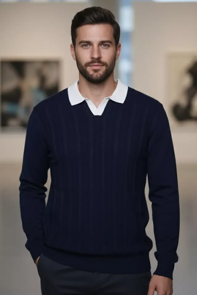 سويتر كلاسيكي محبوك بياقة بولو للرجال