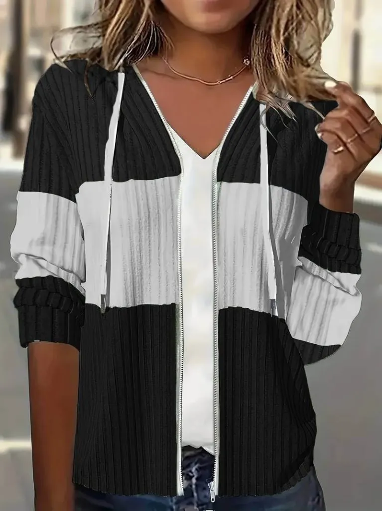 جاكيت تريكو ناعم بملمس فرو خفيف وياقة واقفة لِلوك شتوي يومي دافئ ومريح.