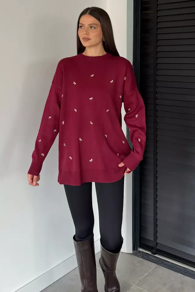 سويتر تريكو نسائي بربطة جانبية وتفصيل فيونكة - Beyond Store
