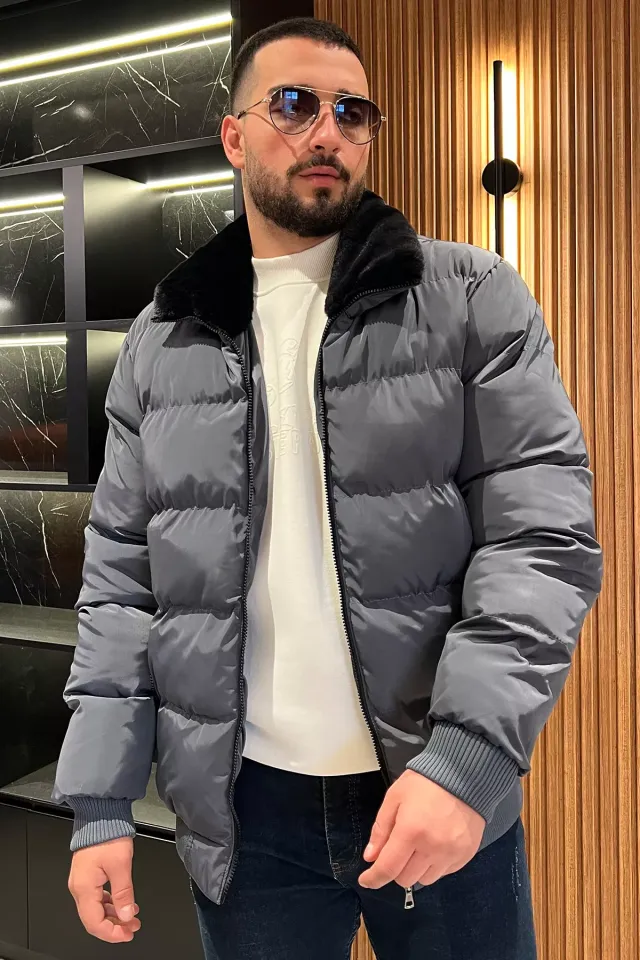 معطف رجالي بسحاب أمامي و ياقة كلاسيكية - Beyond Store