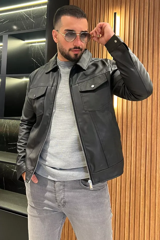 معطف رجالي موسمي بياقة كلاسيكية وسحاب أمامي وبطانة داخلية دافئة، مصنوع من قماش ناعم ومتينا يوفر الراحة ودفء خفيف ومظهرًا عصريًا كاجوال للأجواء المعتدلة.