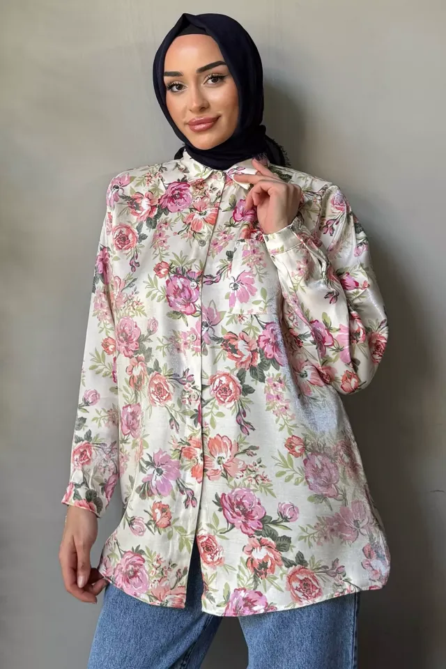 تونيك نسائي بياقة دائرية و تفاصيل زهور - Beyond Store