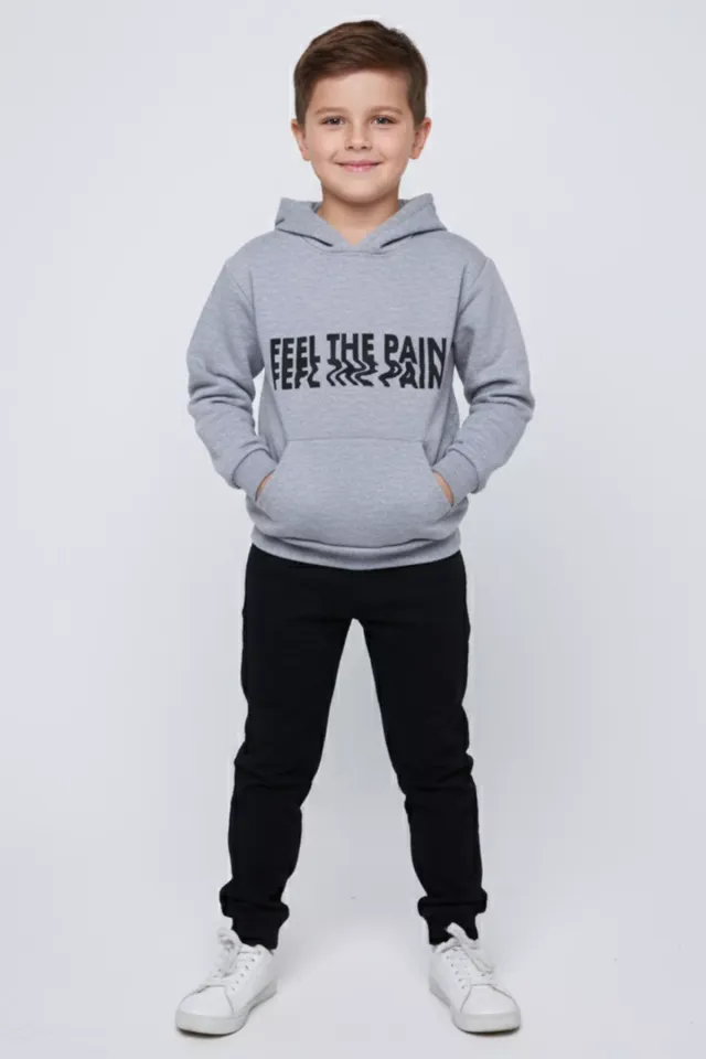 هودي ولادي مريح بقماش ناعم وأكمام طويلة مع طبعة أمامية أنيقة. يتميز بغطاء رأس عملي وقصة مريحة تمنح الدفء والستايل في الإطلالات اليومية.