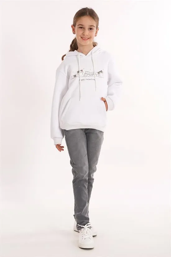 سويت شيرت بطبعة قطة لطيفة و ياقة دائرية للبنات