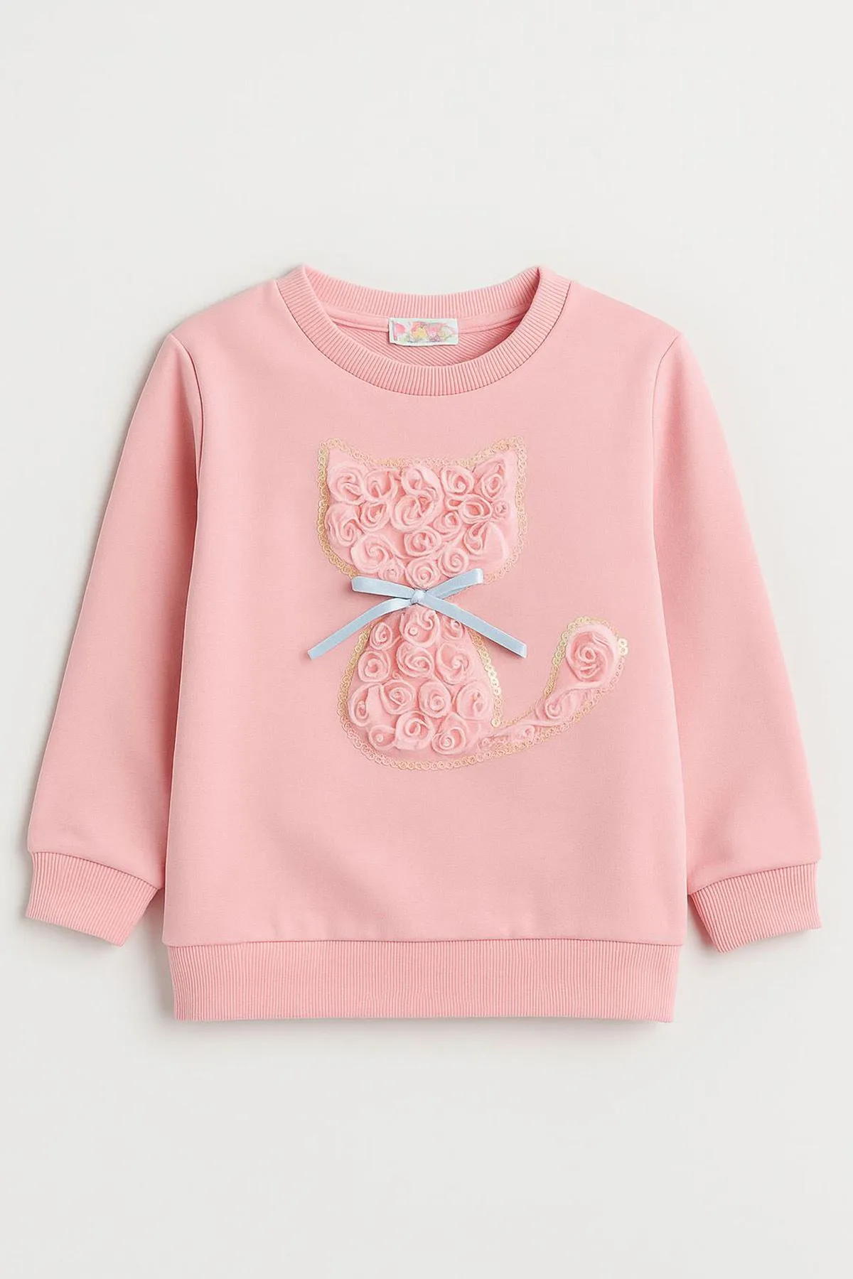 سويت شيرت بناتي مزين بتطريز الكرز الجميل وياقة دائرية كلاسيكية. مصنوع من قماش ناعم ومريح، مثالي للارتداء اليومي والاستخدام الكاجوال.