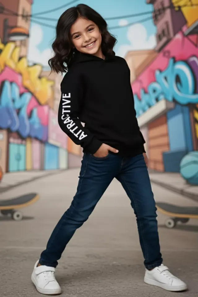 سويت شيرت بناتي ناعم بغطاء رأس وجيب كنغر يوفر الدفء والراحة. مصنوع من قماش مريح مثالي للارتداء اليومي في الأجواء الباردة.