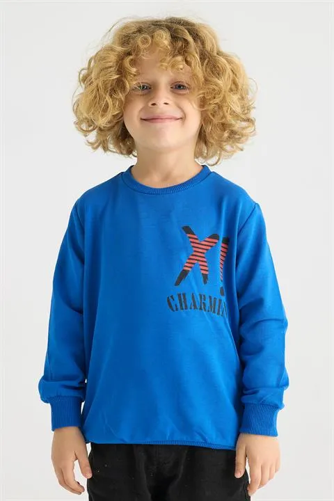 سويت شيرت ولادي بياقة دائرية وأكمام طويلة مع طبعة أمامية مميزة، مصنوع من قماش ناعم وقابل للتنفس يوفر الدفء والراحة وحرية الحركة، مثالي للمدرسة، اللعب، أو الاستخدام اليومي الكاجوال.