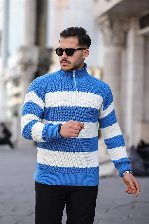 سويتر رجالي محبوك بتفاصيل خطوط و ياقة دائرية