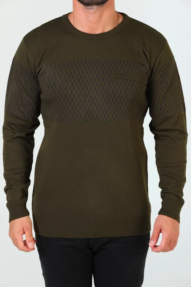 سويتر رجالي محبوك بتفاصيل خطوط و ياقة دائرية