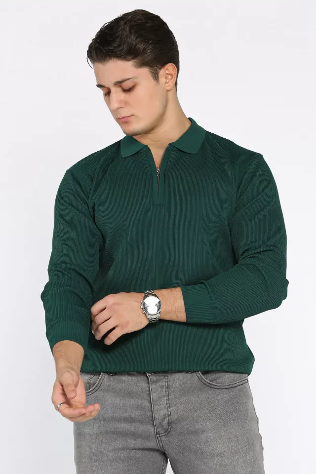 سترة رجالية كلاسيكية محبوكة بياقة بولو، مصنوعة من مزيج ناعم من البوليستر والفيسكوز مع مرونة خفيفة. دافئة وخفيفة الوزن، ومثالية للارتداء اليومي الأنيق في الأجواء الباردة.